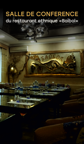En tant que membre de l'Union économique eurasiatique, le Kirghizstan est un excellent pays pour développer ses activitées en ouvrant un marché important et en croissance pour l'Union Européenne. En effet, celui ci assure la libre circulation des biens, des services, des capitaux et des personnes. Ici, vous pourrez communiquer de manière informelle avec des partenaires commerciaux, trouver des endroits idéaux pour vos événements, de bonnes opportunités pour des actions de team-bulding et un rapport qualité-prix optimal dans les hôtels, restaurants et autres lieux. Nous attirons votre attention sur notre salle de conférence "Baïbol" au sein de notre restaurant, sûrement le meilleur endroit pour se rencontrer dans un environnement ethnique unique.